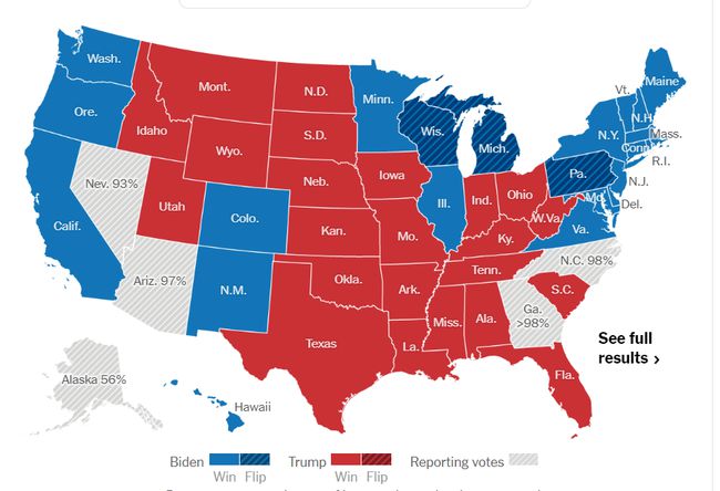 大选地图上清晰的显示PA已经被拜登拿下,而且是从红到蓝,这也意味着就算剩下尚未决定的州里特朗普能够全部拿下,也无法达到胜选需要的票数,拜登如果不出意外将成为下一届美国总统。